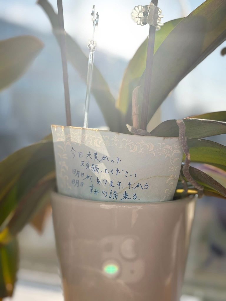 近くの少年院の少年が栽培した《蘭》が飾られていて